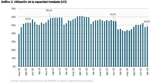 Grafico que demuestra mensualmente la utilización de la capacidad instalada en Argentina