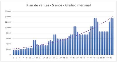 Se prevé trabajar con una producción progresiva, comenzando con 26.000 unidades el primer año, e incrementándose hasta alcanzar 55.000 unidades anuales al segundo año, lo que equivale a un 8% del mercado total. Siguiendo con un crecimiento que abastezca un 20% del mercado total al finalizar el quinto año, este crecimiento anual se estipula por contrato un 4% del total del mercado. Estas proyecciones se sustentan en la capacidad instalada disponible, la escalabilidad del proceso productivo e idea comercial como por ejemplo contratos con clientes estratégicos. Estableciendo que es un proyecto a largo plazo para lograr la estabilidad deseada.