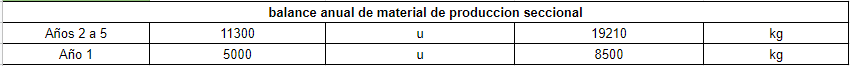 BALANCE ANUAL DE MATERIAL. PRODUCCIÓN SECCIONAL