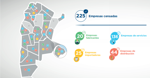 Dado el Censo Nacional Solar Térmico 2017, las provincias más activas significativamente en este rubro son Córdoba, Buenos Aires, CABA y Santa Fe. De ello se deduce que es una industria con mucho potencial por desarrollar a lo largo del país. Su estructura empresarial está distribuida en un 60% empresas de servicios, 20% distribuidoras, 11% importadoras y 9% fabricantes y todo el sector presenta una tendencia a la microempresa (hasta 9 empleados).