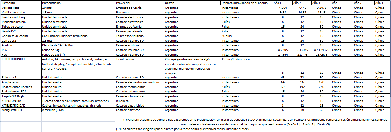 Tenemos un consumo de 700 gramos por maquina. Calculamos que por cada impresión se pierden 5 gramos de material debido a la purga que se debe realizar. Compraremos rollos de 5 kg ya que de las presentaciones que ofrecen los fabricantes es a la que mayor aprovechamiento podemos realizarle.