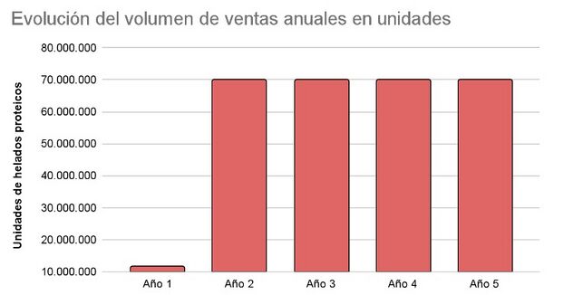 Por lo que el primer año, esperamos tener un volumen de ventas de 11.682.998 helados proteicos y en los años subsiguientes, hablamos de 70.097.999 helados proteicos.