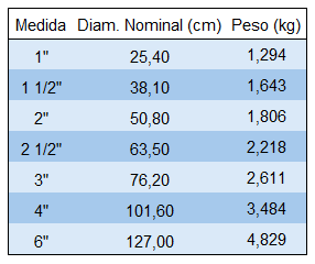 Dentro del catálogo de la empresa se ofrecerán los siguientes diámetros: