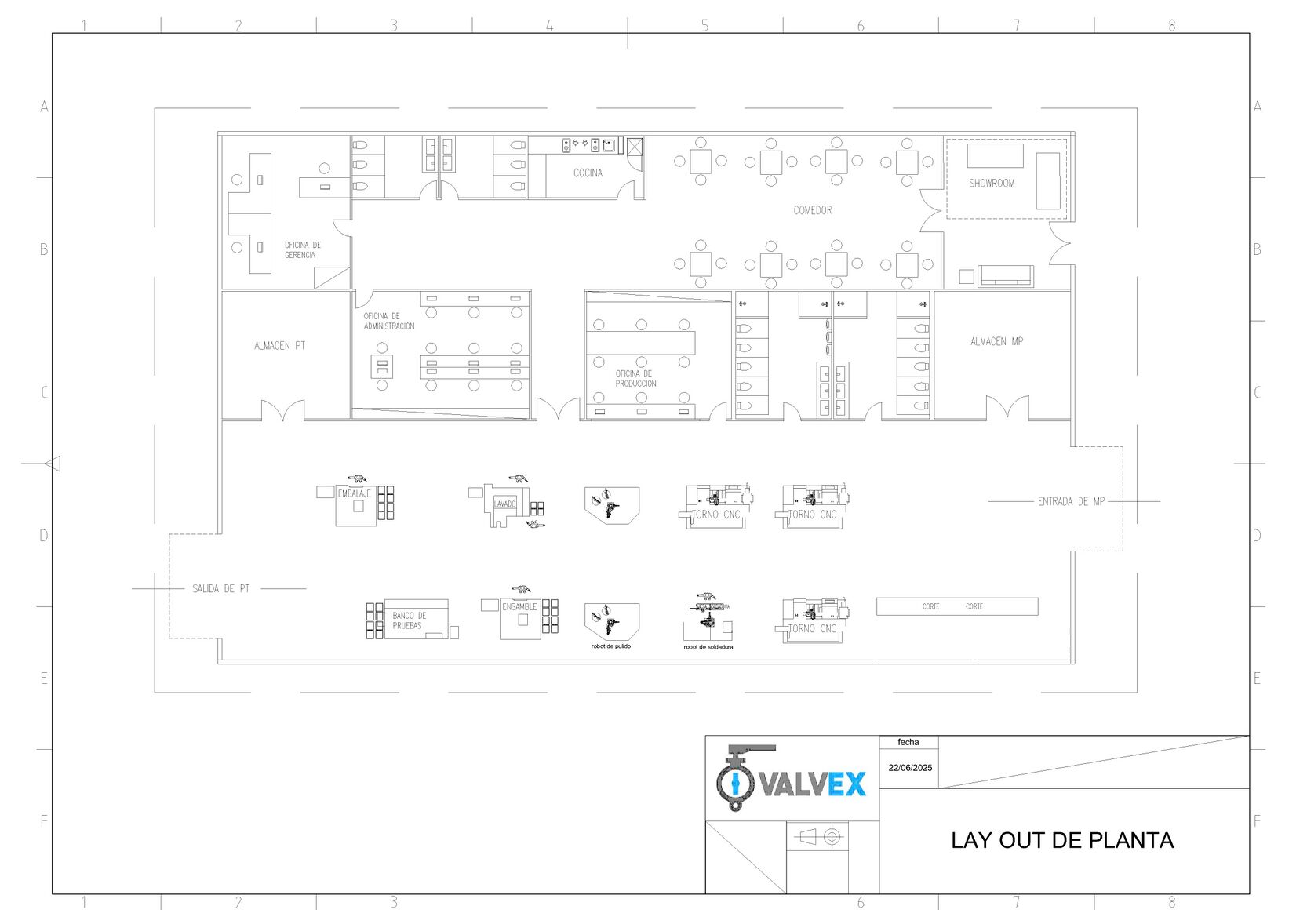- Control visual: El control visual de la válvula terminada consiste en inspeccionar a simple vista toda su superficie para verificar que no presente rayaduras, fisuras, poros, rebabas, manchas, ni restos de material o suciedad, asegurando así un acabado correcto y apto para su uso final.