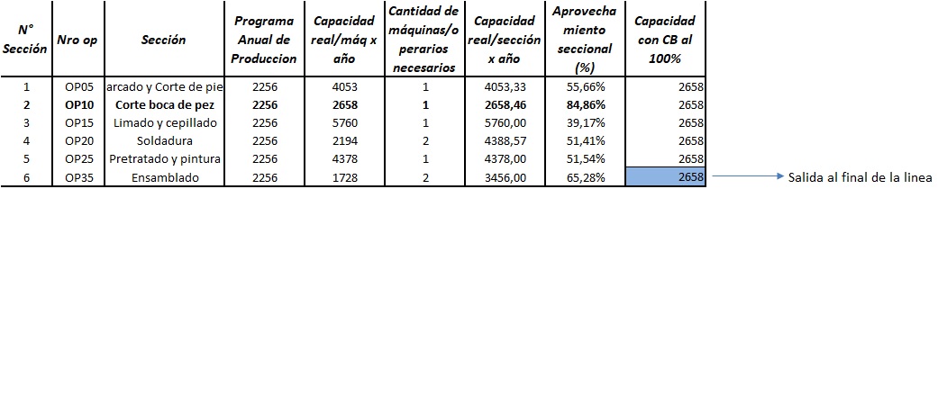 Del análisis anterior se desprende que las operaciones pre-tratamiento y pintura pueden ser realizadas por un mismo operario, debido a su subutilización.