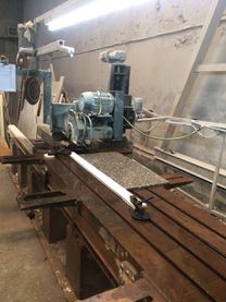 Máquina de eje flexible que posee un paño para pulir el mármol luego de la etapa de corte. También se le coloca una copa de desbaste diamantada o piedras de carburo de silicio para hacer los chaflanes o redondeos.