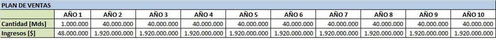 Dado esto, se estima el siguiente plan de Ventas: