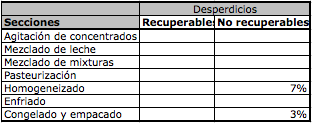 La materia prima que se recibe (para elaboración del helado de crema) es la siguiente: