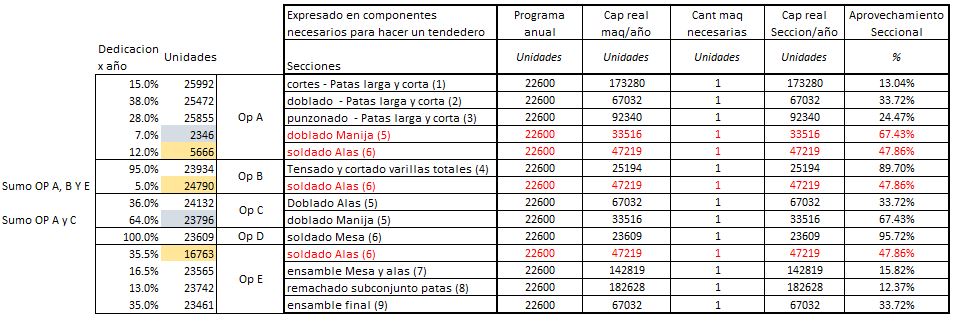 Aunque la capacidad de producción sea 18006,67, se producirán 14.317,61 tendederos durante el primer año (ventas + stock promedio)