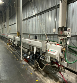 Este proceso consiste en cargar una mezcla de masterbatch y polipropileno al cargador gravimétrico de la extrusora secundaria. Esta mezcla está destinada a conformar la línea distintiva de los tubos.