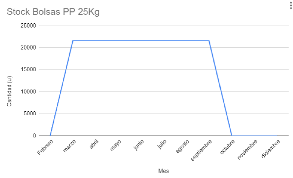 | Materias primas | Código | Nivel | Cant. por bolsa de Xkg | Unidad |