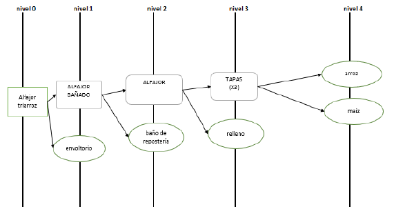 Relleno: consiste en pasta de maní ya endulzada. Son dos capas de relleno intercaladas con las galletas.