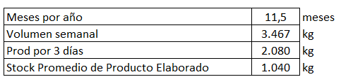 Enfriado: se realiza el enfriado al aire libre, este proceso se hace en dos etapas del sistema productivo. Las dos veces se hace a la salida de los hornos. La primera tarda 150 minutos, y se realiza en un carros con varios estantes optimizando el lugar de esta actividad. Luego hay un segundo enfriamiento que tarda 12 minutos. Este proceso va un lote más atrasado, es decir como los tiempos de enfriado son los mínimos, los budines se pueden dejar enfriado toda la noche.