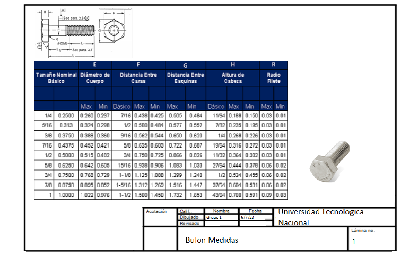• Dimensiones: Tolerancias las cuales se deben respetar según la norma para este tipo de bulon