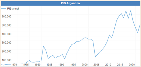 PBI argentino a través de los años. Fuente: https://datosmacro.expansion.com/deficit/argentina