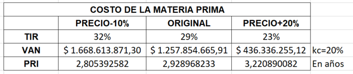 Se consideraron los escenarios de disminución de un 10% y aumento del 20% de los costos.