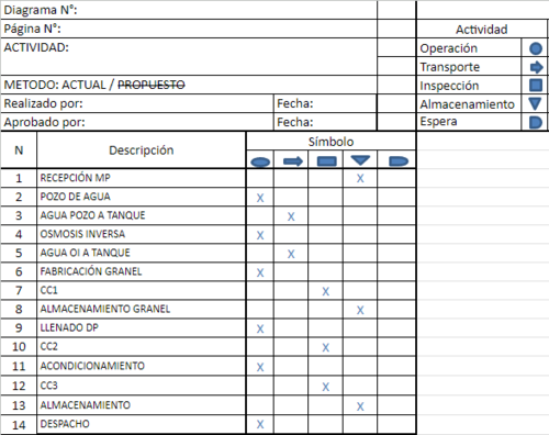 La muestra que se extrae luego de la fabricación del granel, se lleva al laboratorio de control de calidad, donde se le realizan los controles detallados en el cuadro. Si los valores se encuentran dentro de la especificación, no se realiza ninguna corrección. Para los valores de peso específico y pH, en caso de encontrarse más bajos o más altos que la especificación, se aplican correcciones a la fórmula de fabricación del producto, añadiendo más o menos materia prima que balancee los valores. En caso de no haber manera de ajustar los valores medidos, se rechaza el producto para luego definir si se recupera o se descarta, y se deberán definir acciones correctivas para prevenir la recurrencia de la desviación en los valores medidos.