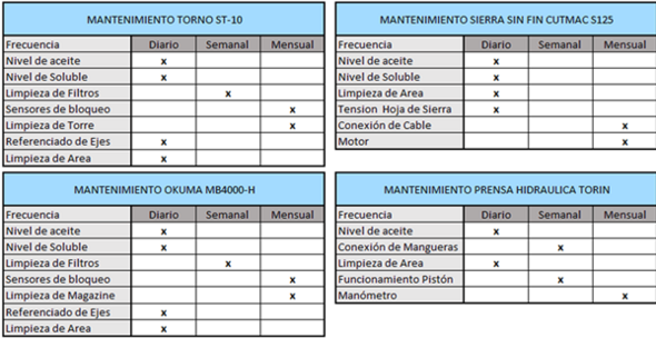 Mantenimiento y medios de control (máquinas, tareas, etc.). Descripción de los sistemas de seguridad (incendios, accidentes, etc.)