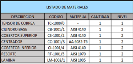 Norma de Materiales: AISI 4140 - AISI 1005 - AISI 1070 - AA 6082/T6