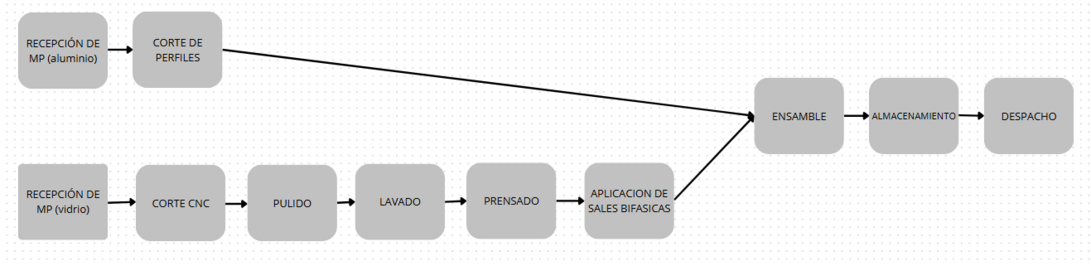 Para esta etapa del proceso, se deberán llevar los perfiles cortados de aluminio y ensamblarlos en la unidad que ya tuvo su aplicación de sales bifásicas, para ésta actividad 2 personas trabajarán para realizar un correcto ensamble de la misma, ya que de esta manera se pueden llevar los 4 perfiles y poseer un mayor control sobre el ensamblado que trabajando uno solo poniendo los 4 perfiles.