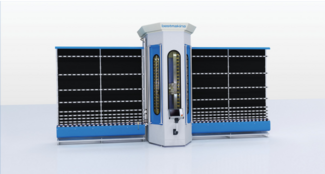 LAVADO DE VIDRIO: Lavadora automatizada, con mínima intervención manual para el posicionamiento inicial, con posicionamiento en carga y descarga del vidrio del operario que observa la calidad de lo trabajado.
