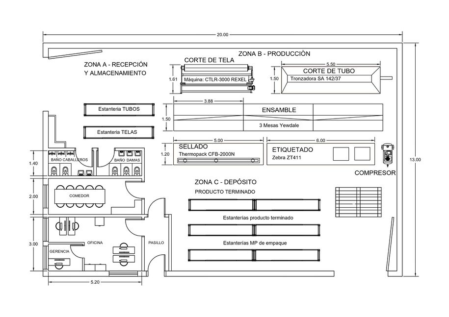 Plano de la Planta mostrando la distribución de las distintas áreas