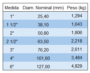 Dentro del catálogo de la empresa se ofrecerán los siguientes diámetros: