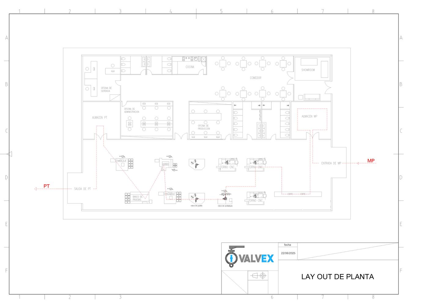 Plano mostrando el recorrido de los materiales