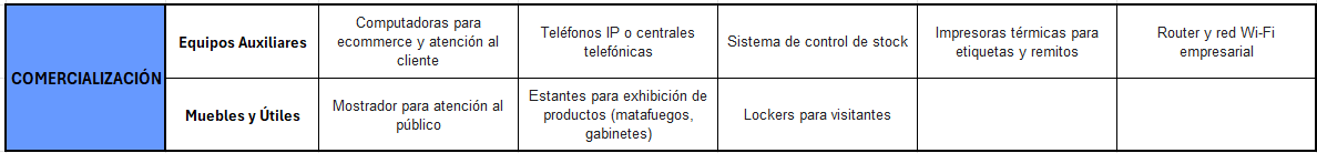 Listado de equipos, muebles y útiles del área de Comercialización.