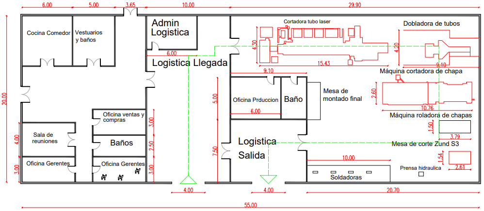 Plano de planta - Sistema de escape - Flujo