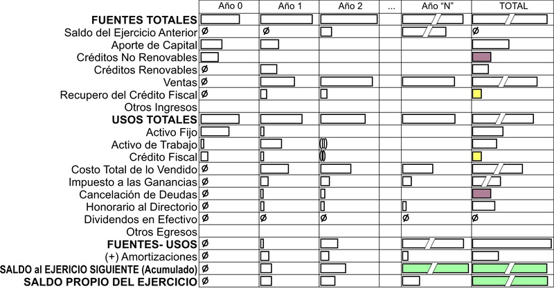 Incluso es posible por ejemplo que en algún año (sobre todo en los primeros años) que este margen sobre ventas modificado sea negativo debido a que los gastos financieros son superiores a la Utilidad económica de ese año. Esto no implica un problema en sí, ya que este quebranto ya ha sido considerado y puede ser cubierto con amortizaciones o con aporte de capital por parte del inversor, ambas situaciones que pueden apreciarse perfectamente en el Cuadro de Fuentes y Usos.